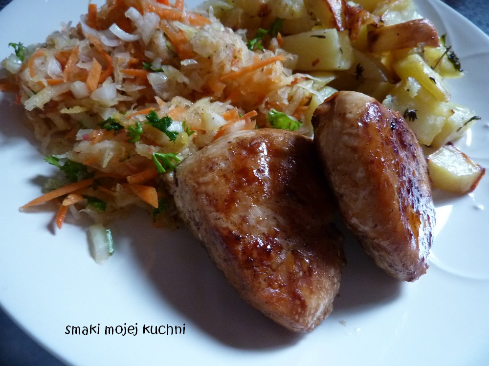 grillowany kurczak i surowka z kiszonej kapusty